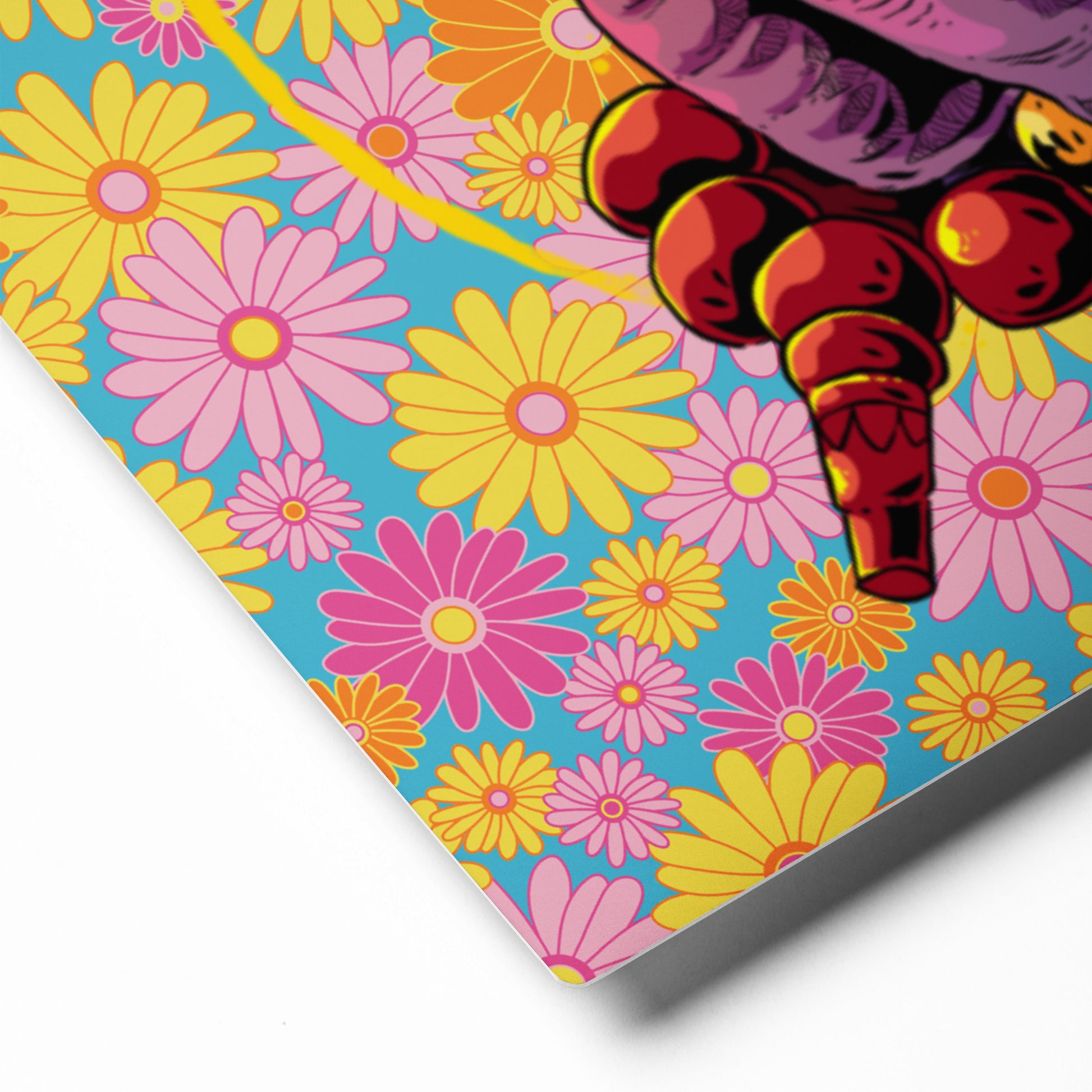 This metal print is a dimensional and high-quality piece of art that stands the test of time while remaining easy to clean and care for. The artwork looks luminescent against the wall and the metal base means it’ll last a long time.