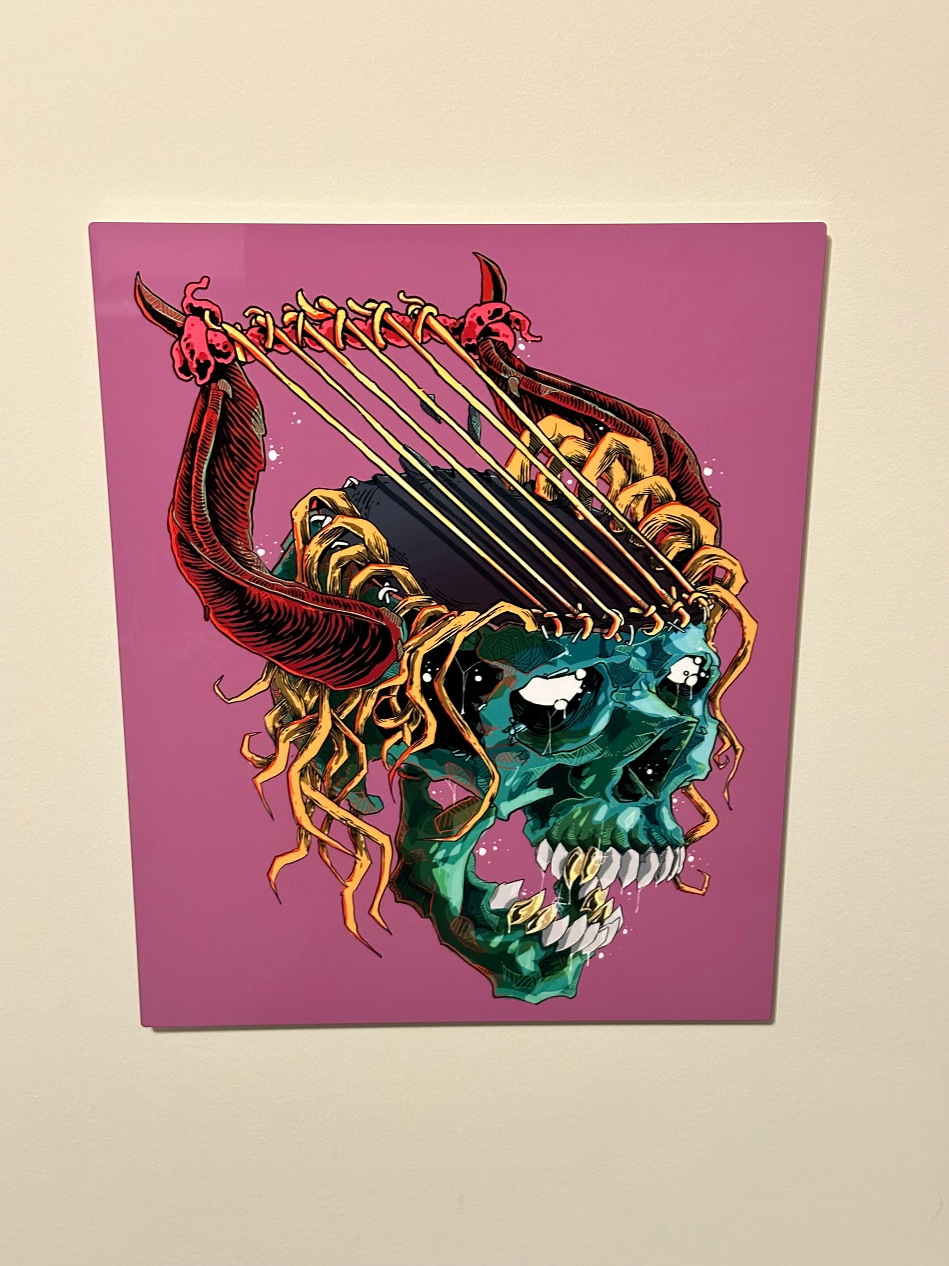 This metal print is a dimensional and high-quality piece of art that stands the test of time while remaining easy to clean and care for. The artwork looks luminescent against the wall and the metal base means it’ll last a long time.